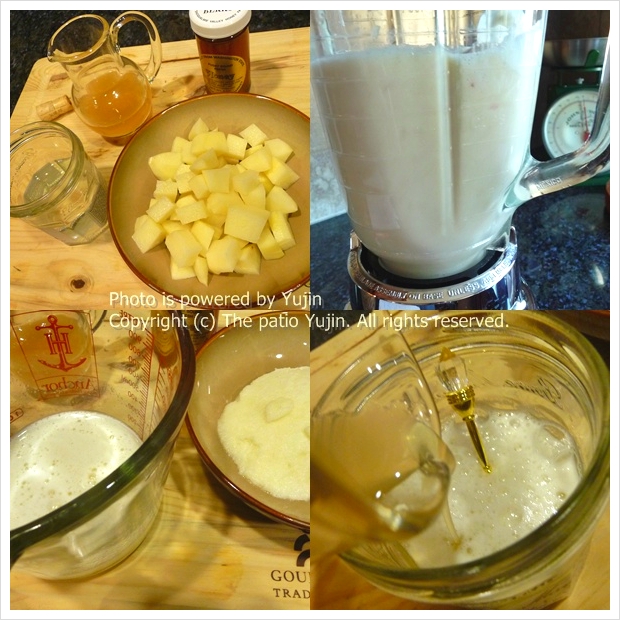 재료/ 생감자 크기에 따라 2~3개, 물 1/2컵, 꿀 또는 과일효소.
