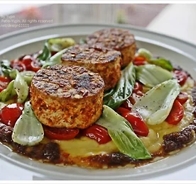 그냥 먹기엔 밍밍한 두부는 늘 어떤식이든 요리를 요구하는데,그림 재료로 따지면 마치 하얀 백지와 같아...어떤 색을 입히고, 어떤 디자인을 하느냐에 따라, 별볼일 없는 두부가 확~ 달라 보인다. 만약, 레스토링에서 먹어본 멋진 생선요리나 스테이크 요리의 색과 디자인을 두부요리에 응용해 본다면? 이거 두부 맞아? ...감쪽 같이 고급 요리로 변신시킬 수 있어 내게는 참 재미있는 요리아이템이 바로 두부이다^^"두부 한모의 미학" 이라고 정한 요리 주제로, 몇번째 시도하고 있는 색다른 두부요리인데,이유는 흔하고, 싸고, 몸에 좋기 때문이다. 마치, 구운 스테이크를 연상시키는 요리인데, 실제 두부를 구울때 스테이크에 사용하는 양념덧칠하기 기법을 썼다. 빈약한 두부요리에 샐러드요리로서 완성시키기위해 컬러플한 녹색..
